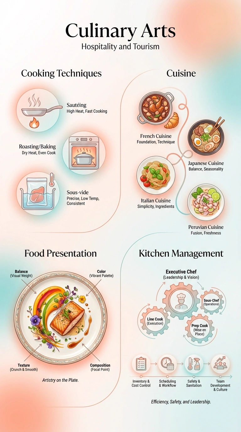 Culinary Arts is an essential course in Hospitality and Tourism that builds foundational knowledge and skills. This infographic provides a comprehensive visual overview of the course material, perfect for exam preparation and quick reference.