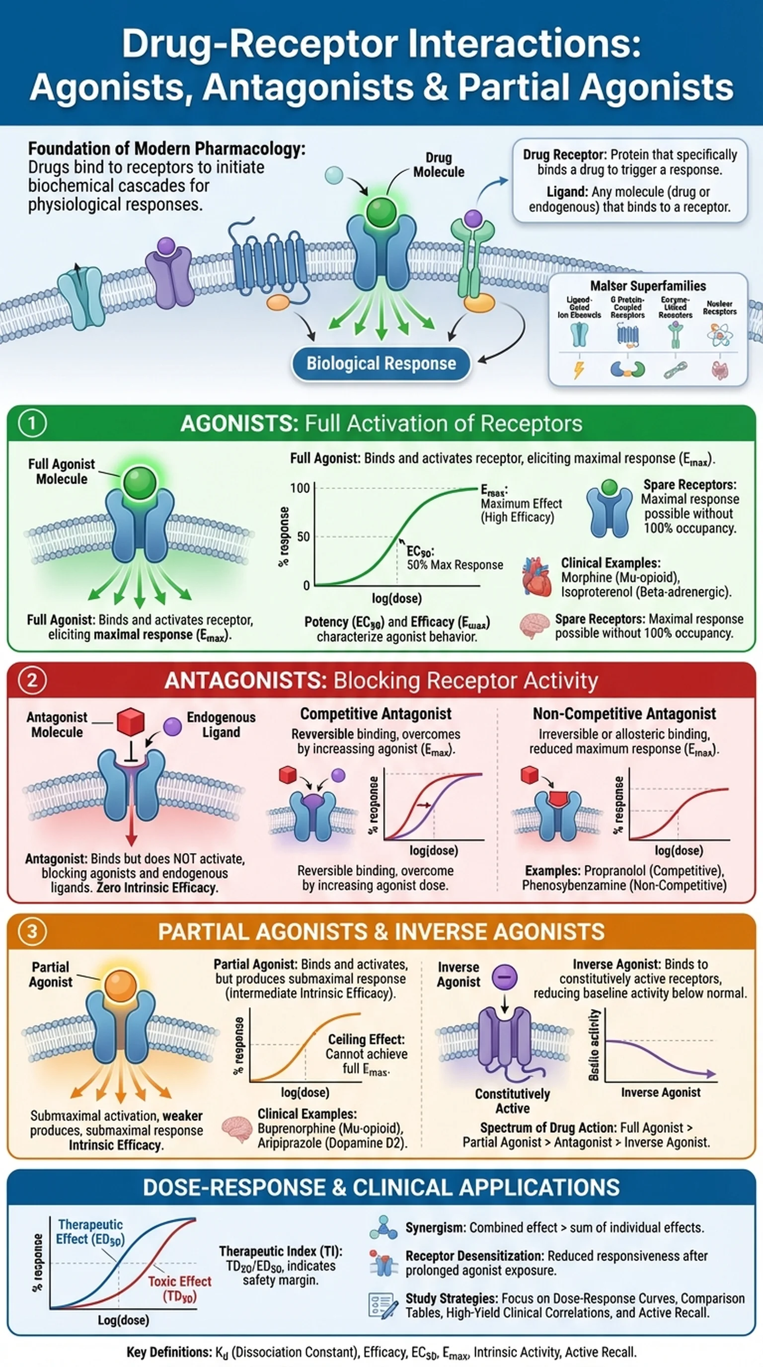 The concept of receptor pharmacology dates back to the early twentieth century, when Paul Ehrlich and John Newport Langley independently proposed that drugs exert their effects by interacting with discrete cellular components. Today, receptor pharmacology has evolved into a sophisticated discipline that encompasses molecular modeling, quantitative binding assays, and structure-activity relationship studies. At its core, however, the principle remains the same: a drug must bind to a receptor to produce an effect, and the nature of that binding determines whether the drug activates or inhibits the receptor.