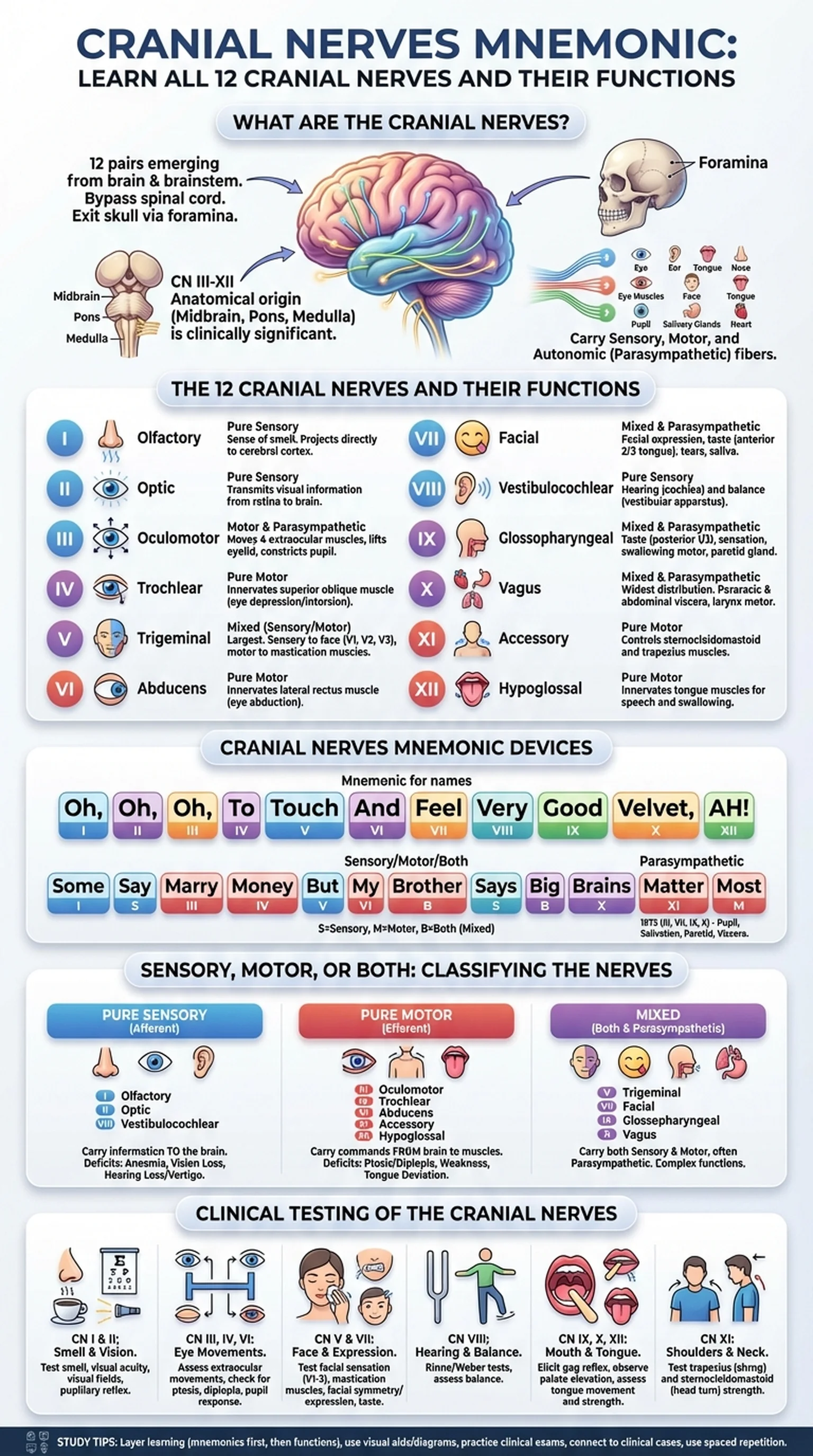 Learning the cranial nerves is a rite of passage in medical and health sciences education. The volume of detail—names, numbers, functions, pathways, foramina, and clinical correlations—can feel overwhelming. That is precisely why cranial nerves mnemonic devices have been used by generations of students to organize and retain this information. With the right mnemonics and a structured study approach, you can master the 12 cranial nerves efficiently and apply your knowledge in clinical settings.